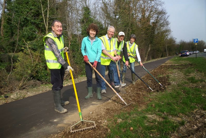 Volunteers hard at work replanting the verges with grass and wild flower seed